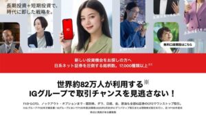 IG証券は、業界トップクラスのCFD取扱銘柄数を誇る、圧倒的なスケールが魅力のCFDサービスです。